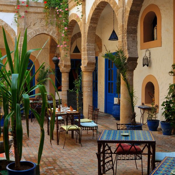 Daarna is er tijd om te slenteren door de kleurrijke souks en bijzondere boetieks. Terug in Riad Orange sluiten we de dag af met Marokkaanse thee en koekjes, op het dakterras of in de rustgevende patio—een perfect moment om na te genieten.